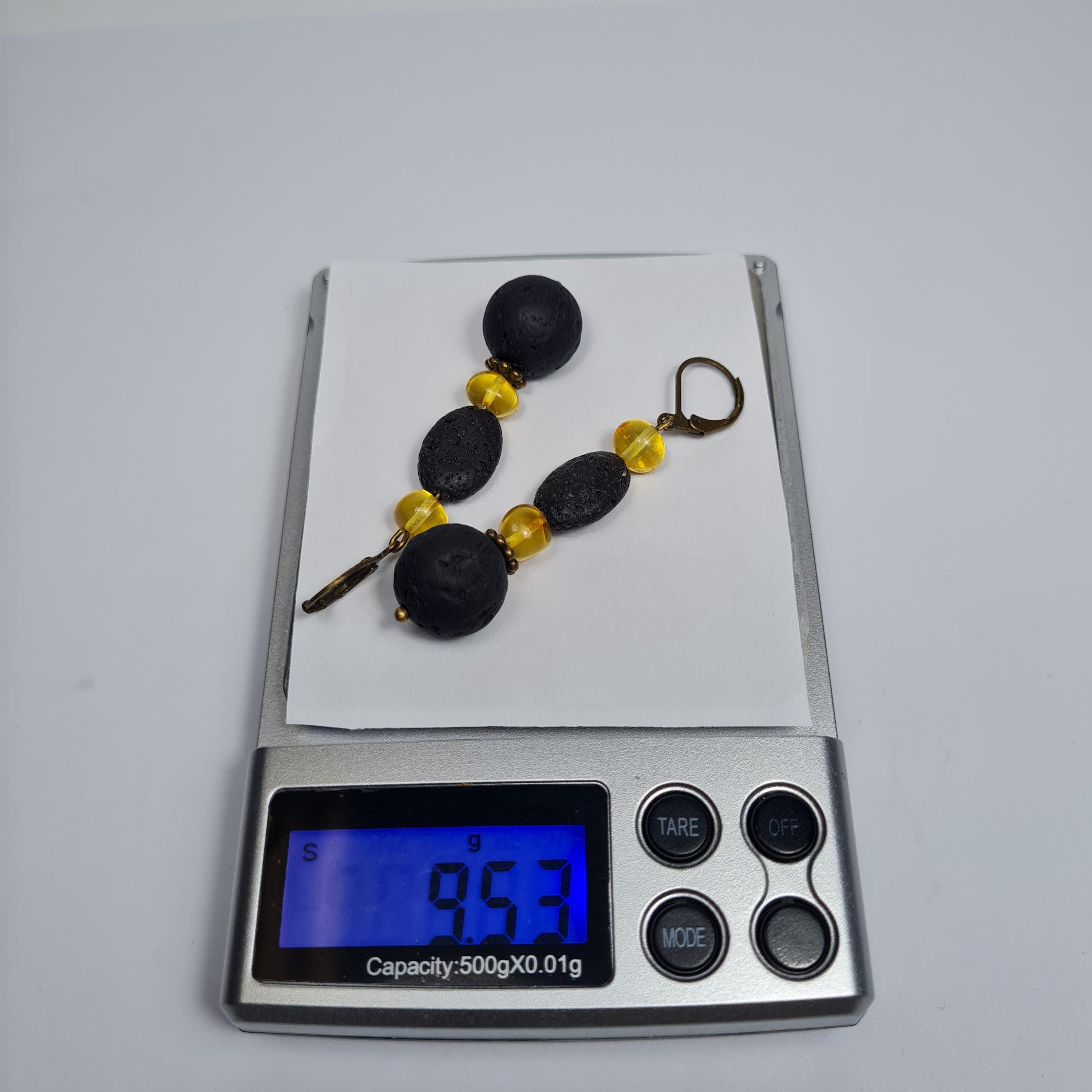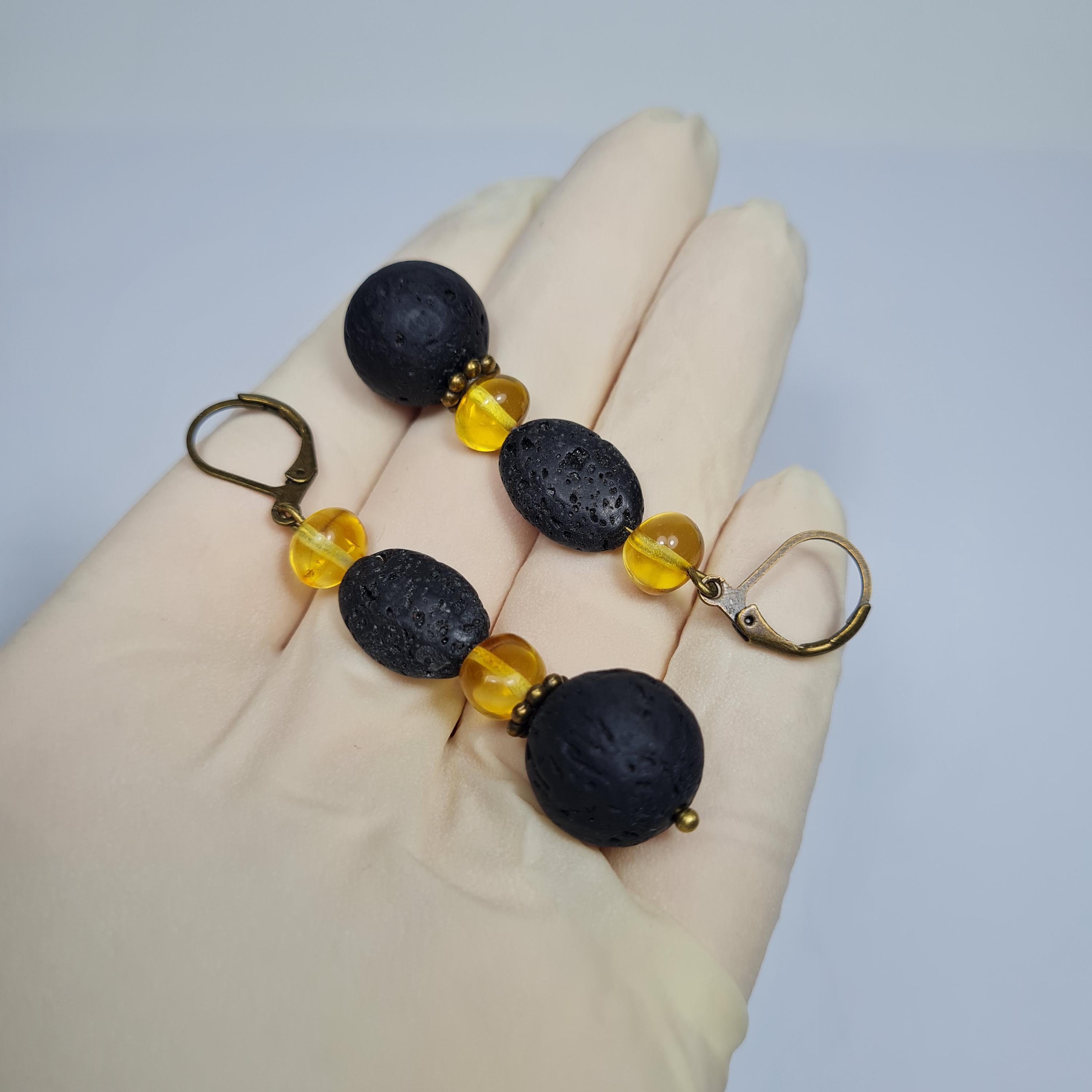 · Item: Baltic Amber and Lava dangle / drop earrings.