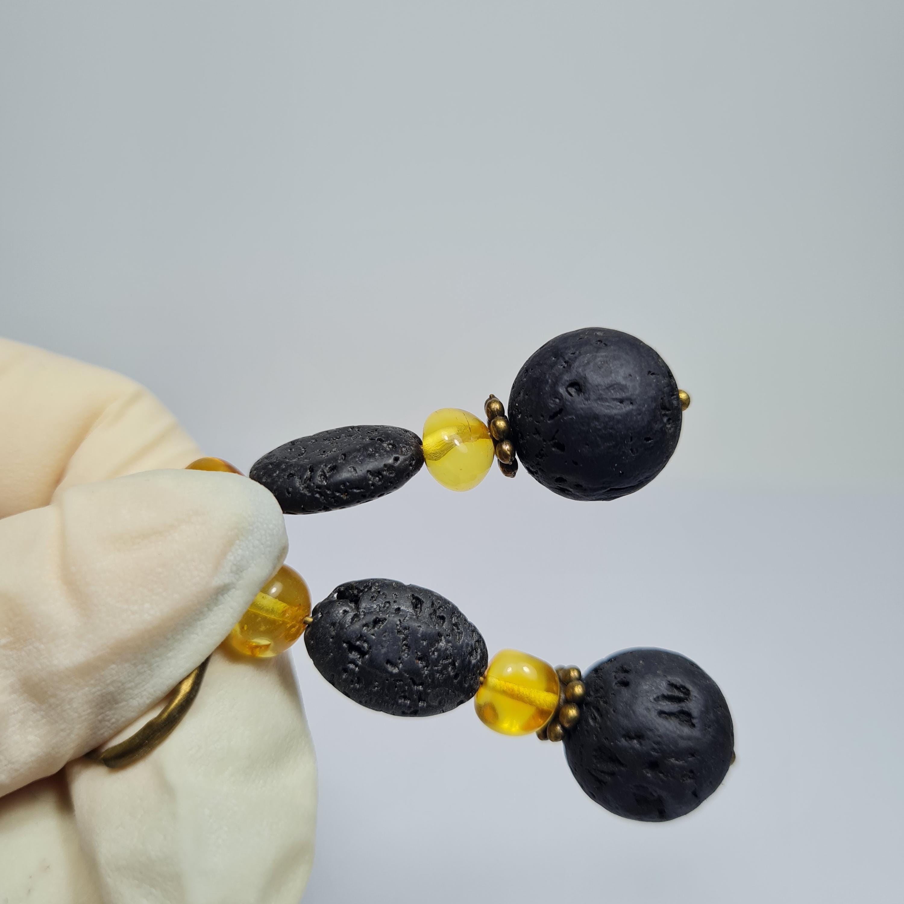 · Material: Natural Baltic Amber and Lava.