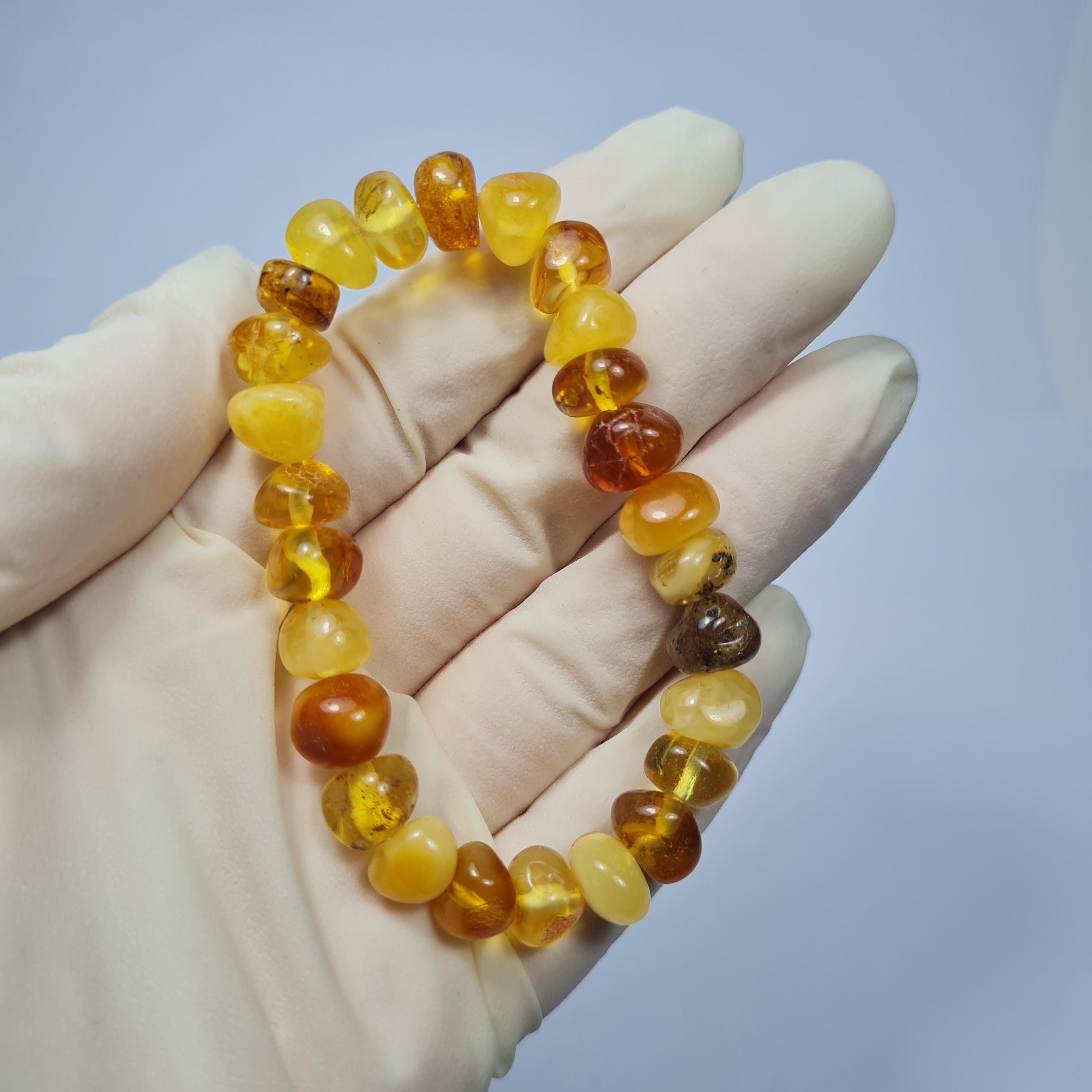 Natural genuine Baltic Amber stretchable bracelet authentic unique women's jewelry.