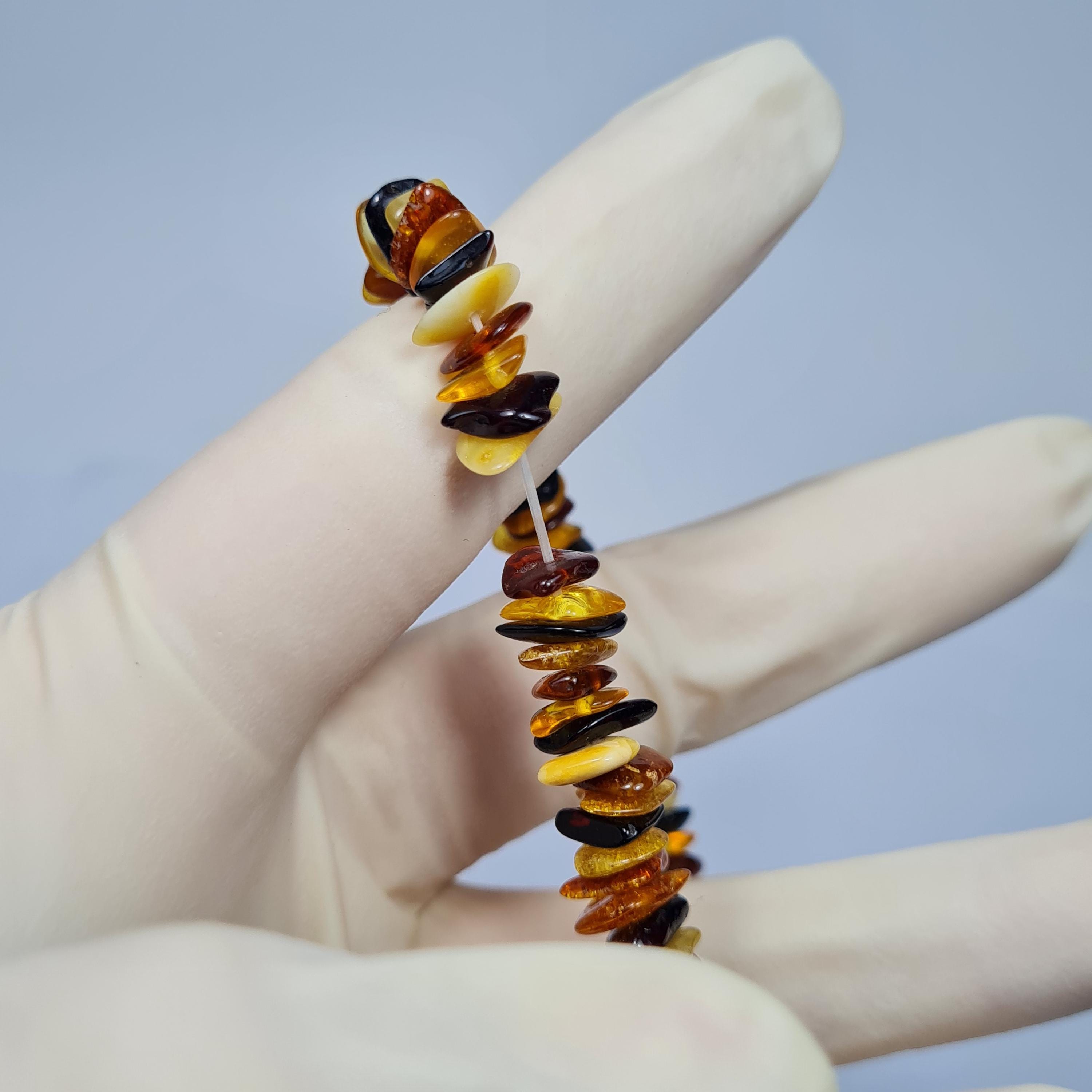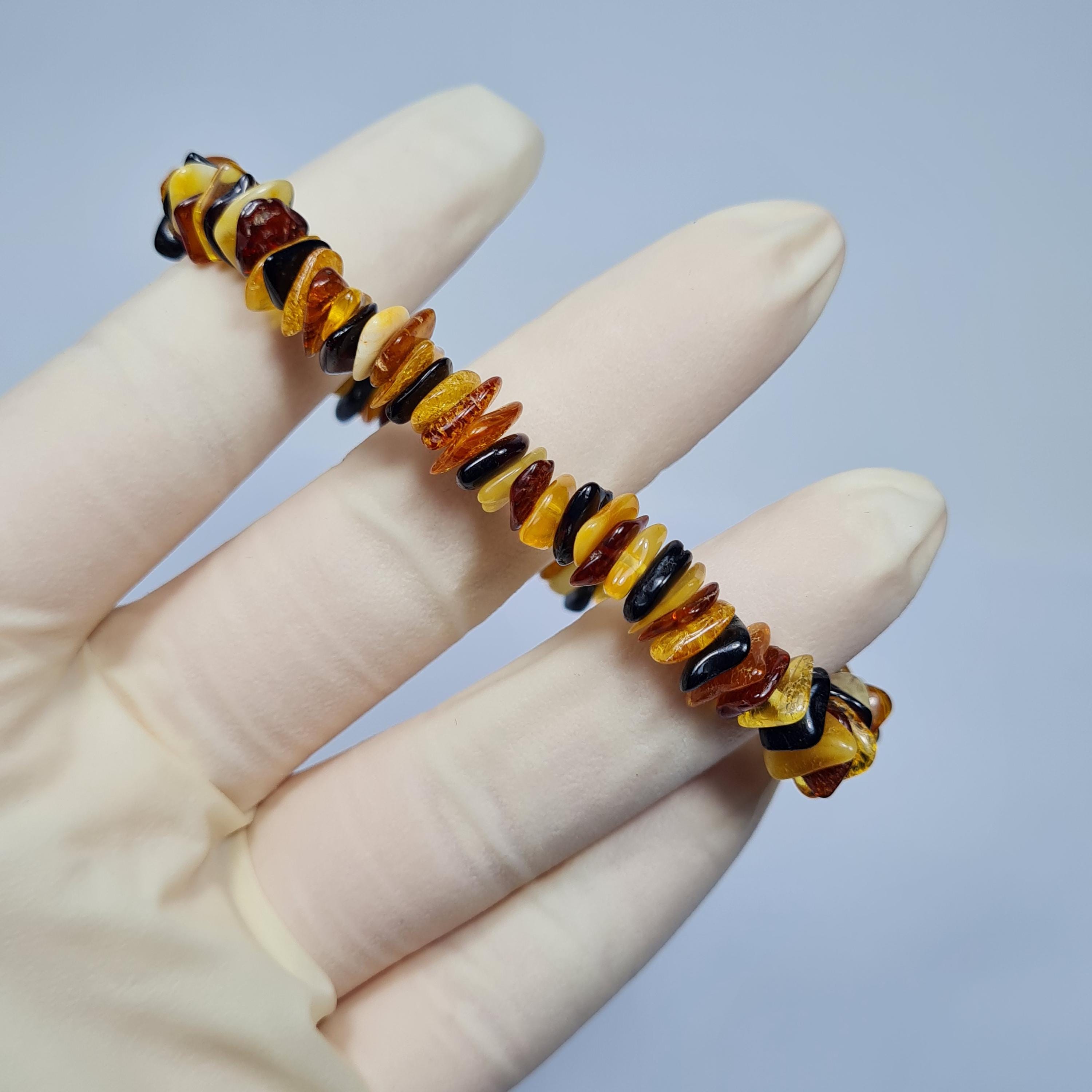 Natural genuine multicolor Baltic Amber stretchable bracelet authentic unique women's jewelry.
