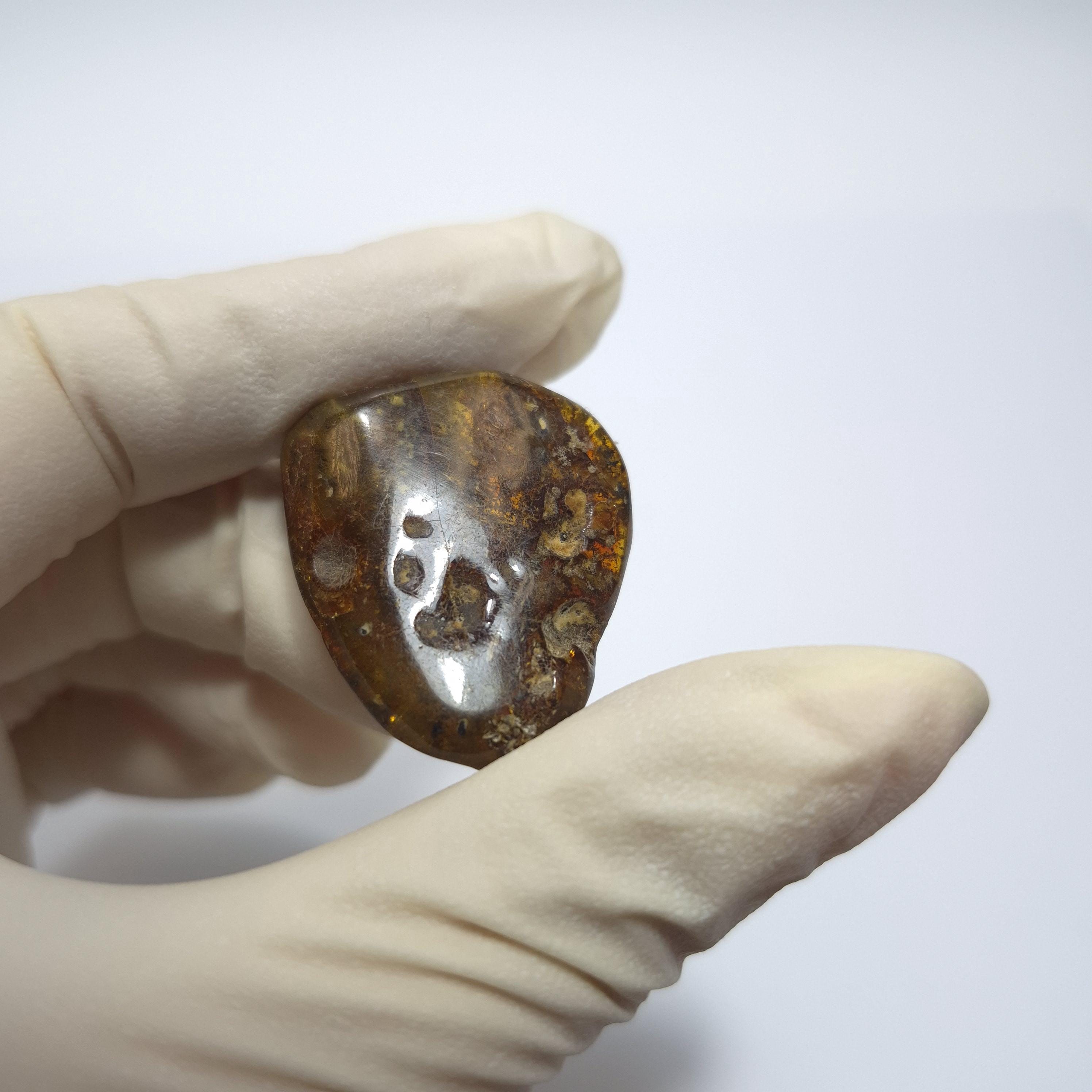 Take a needle and heat it over the flame (use pincers to avoid skin burns). Stick a heated needle into an imperceptible place in amber. Copal and amber diffuses definite pine-tree resin smell whereas other sorts of fake amber (plastic etc.) will smell like burning plastic. However, amber is fragile and it does not melt. Sticking with a hot needle you will notice some cracks, while a needle will pierce plastic and copal without cracking it. The “hot needle” test is the most effective way to identify true amber and it does not require any sophisticated equipment. The only negative of this test is the slight mark of burning remains which is irreparable.