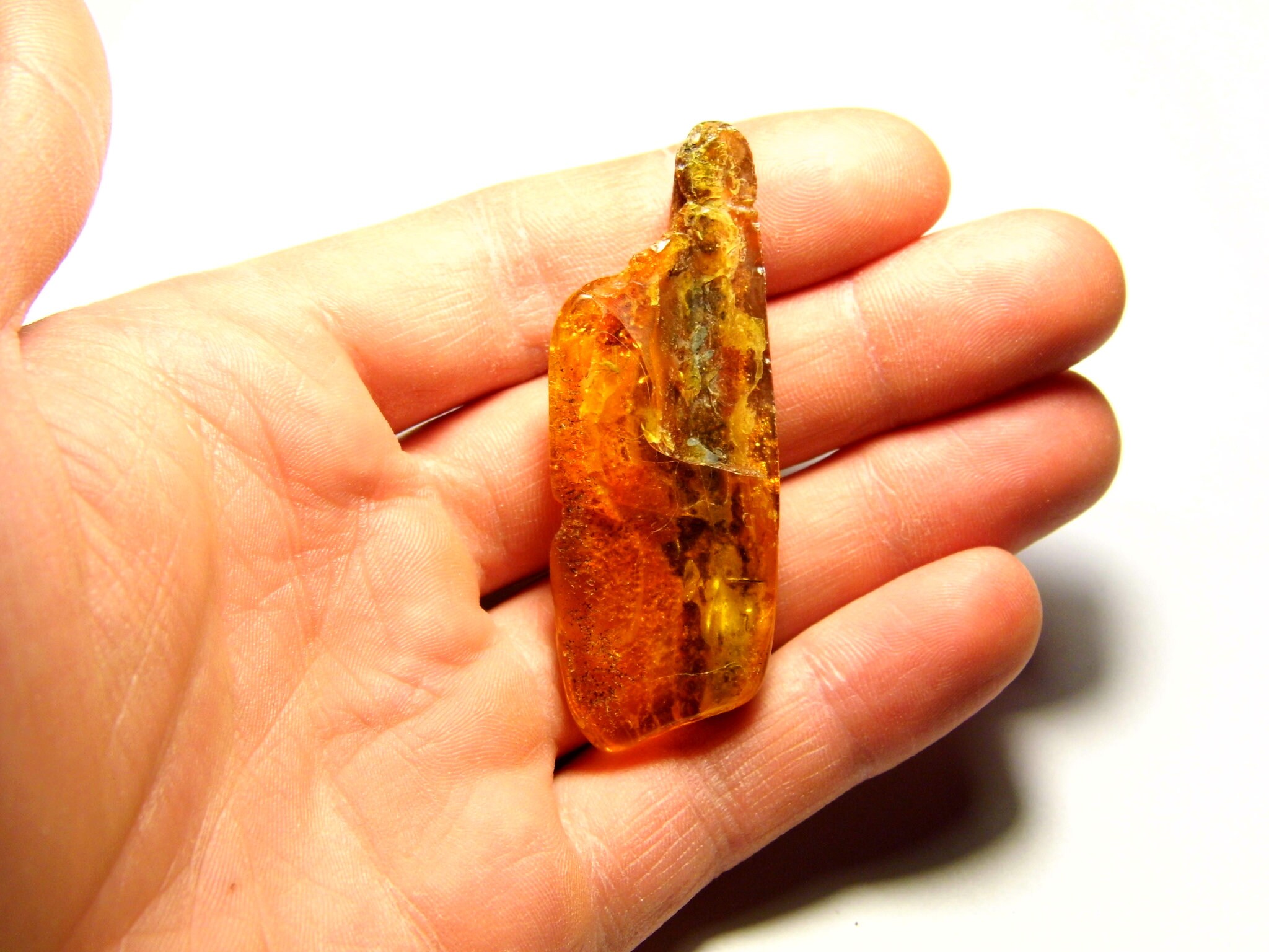 Take a needle and heat it over the flame (use pincers to avoid skin burns). Stick a heated needle into an imperceptible place in amber. Copal and amber diffuses definite pine-tree resin smell whereas other sorts of fake amber (plastic etc.) will smell like burning plastic. However, amber is fragile and it does not melt. Sticking with a hot needle you will notice some cracks, while a needle will pierce plastic and copal without cracking it. The “hot needle” test is the most effective way to identify true amber and it does not require any sophisticated equipment. The only negative of this test is the slight mark of burning remains which is irreparable.