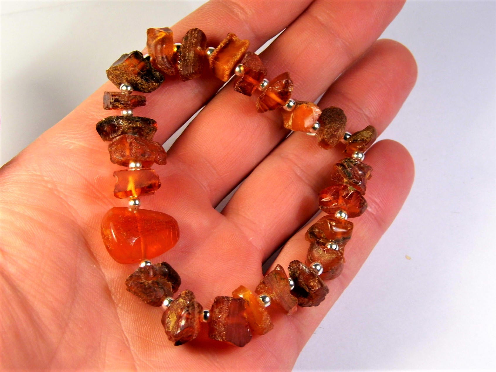 Cognac honey color natural genuine real Baltic Amber stretchable bracelet authentic unique rare jewelry.