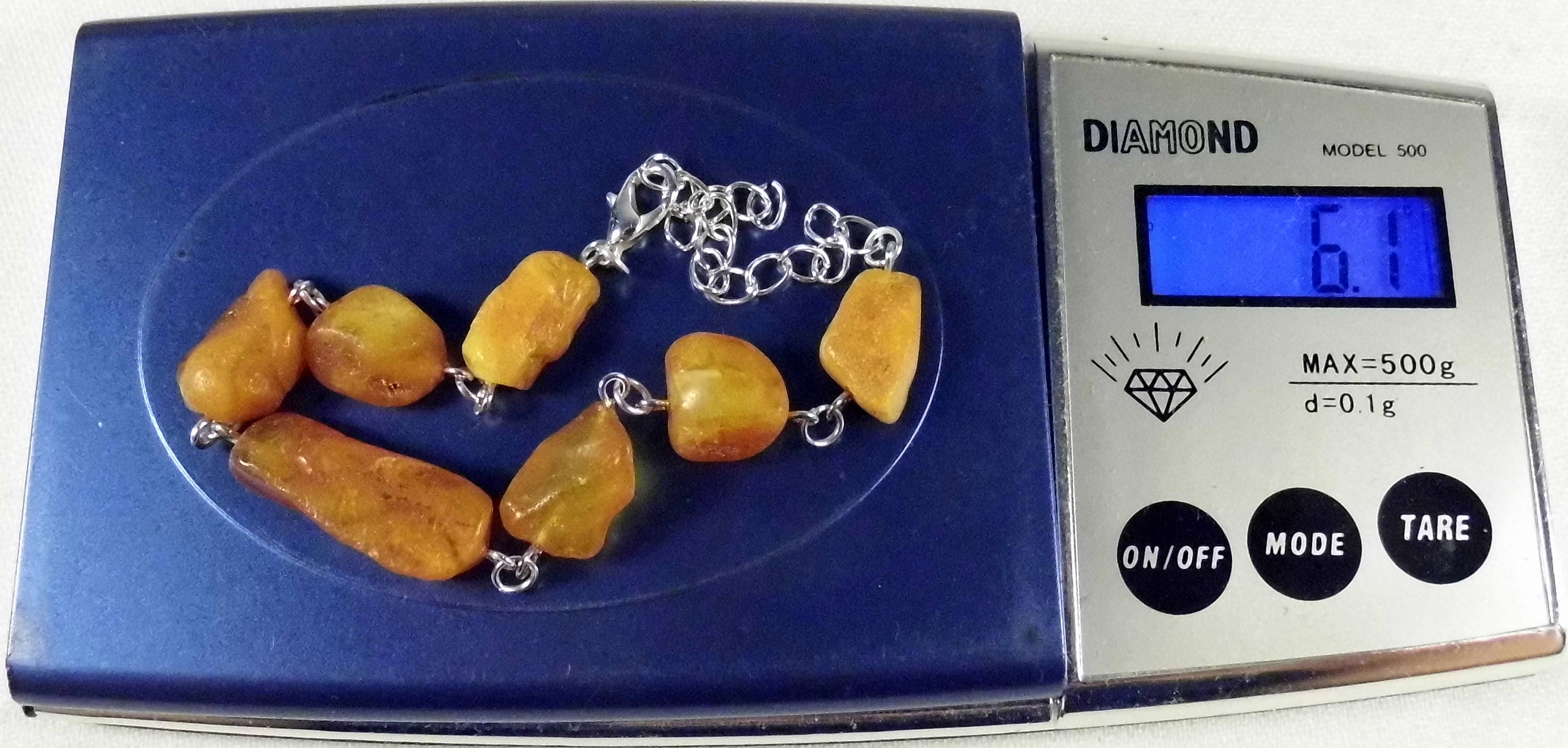 Raw unpolished rough natural genuine real Baltic Amber stone bracelet authentic women's jewelry.