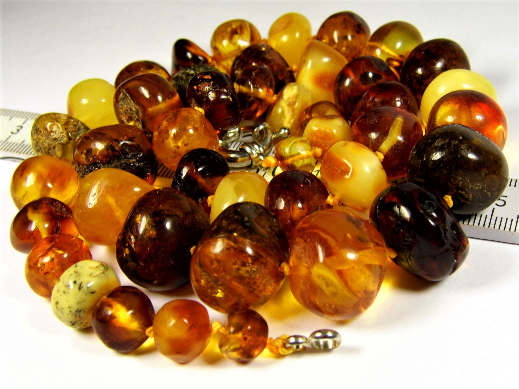 Natural genuine real Baltic Amber stones necklace authentic unique women's jewelry.