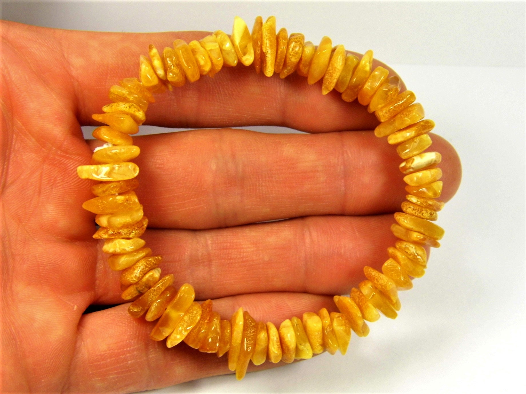 Baltic Amber natural genuine honey yellow stones stretch bracelet authentic unique women's jewelry.