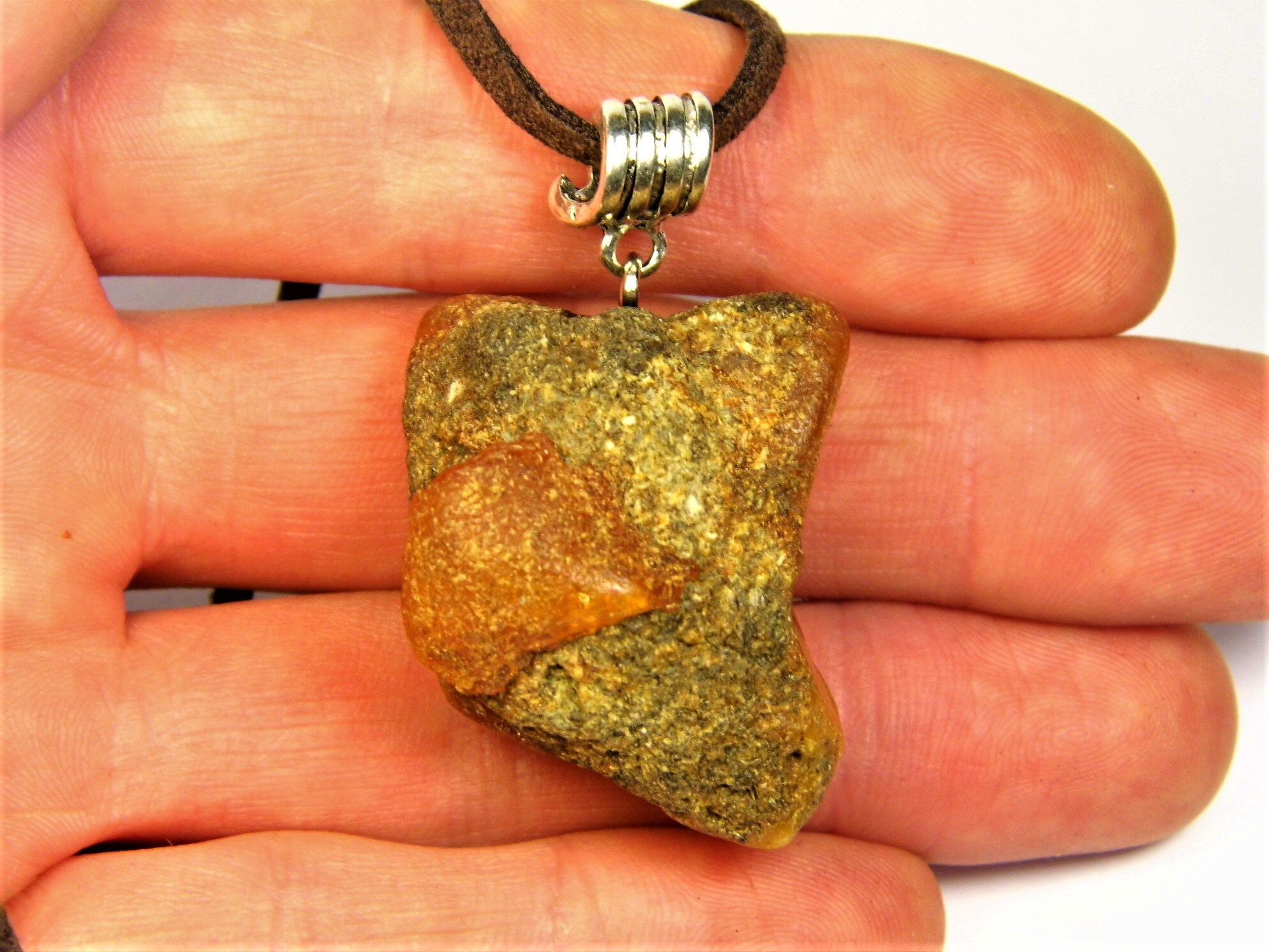 Raw Baltic Amber stone pendant necklace natural genuine men's women's unisex unique jewelry authentic.