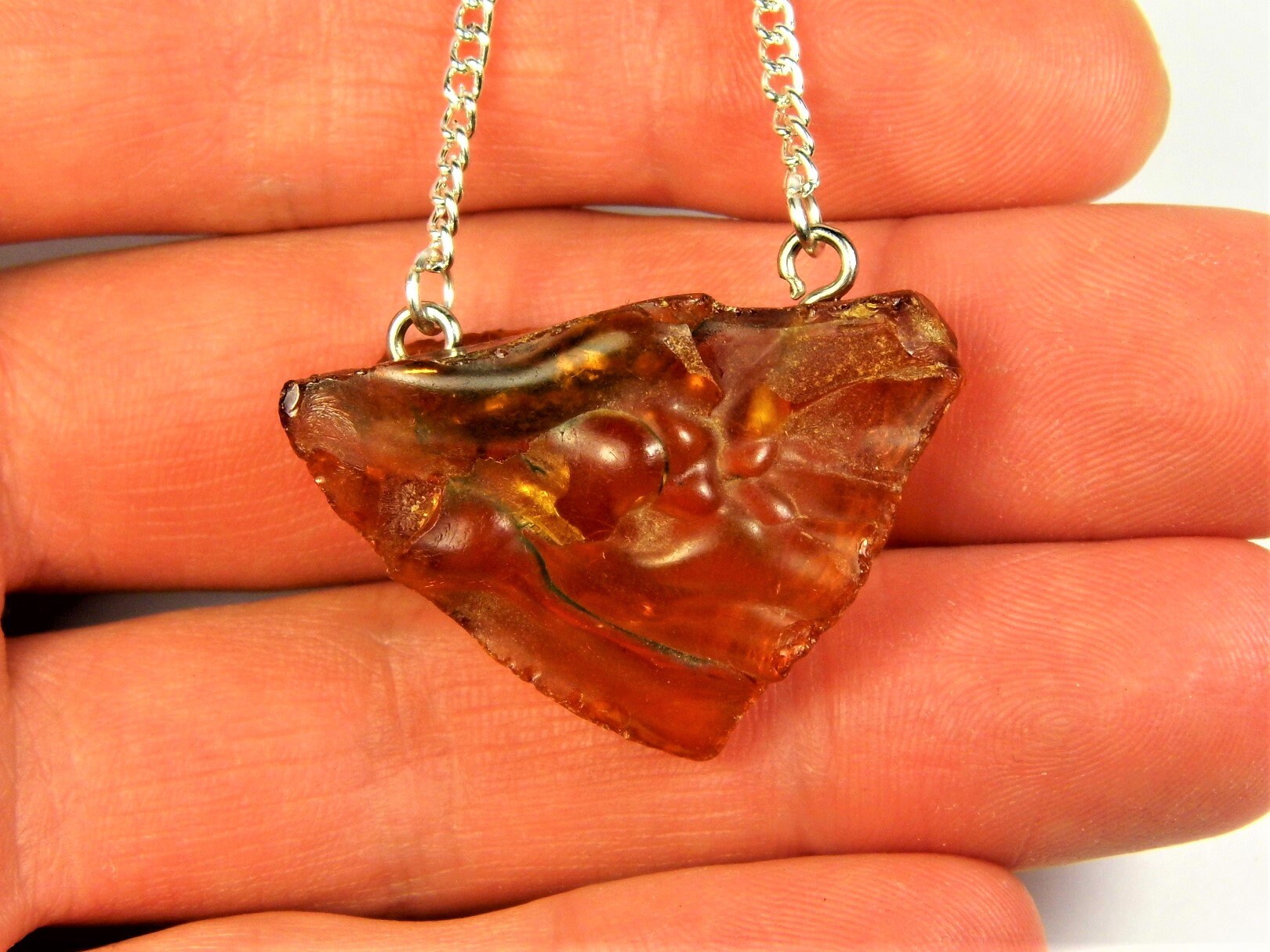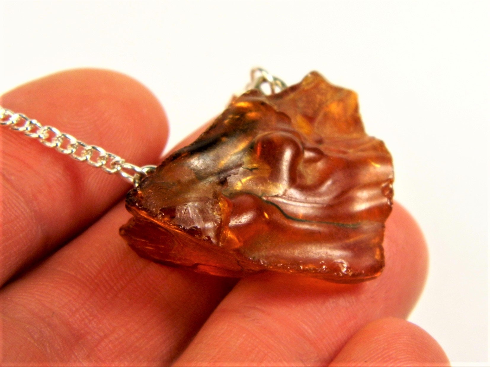 Raw unpolished Baltic Amber stone rough pendant necklace natural genuine women's unique jewelry authentic.