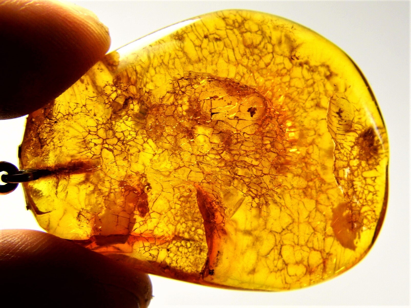 Take a needle and heat it over the flame (use pincers to avoid skin burns). Stick a heated needle into an imperceptible place in amber. Copal and amber diffuses definite pine-tree resin smell whereas other sorts of fake amber (plastic etc.) will smell like burning plastic. However, amber is fragile and it does not melt. Sticking with a hot needle you will notice some cracks, while a needle will pierce plastic and copal without cracking it. The “hot needle” test is the most effective way to identify true amber and it does not require any sophisticated equipment. The only negative of this test is the slight mark of burning remains which is irreparable.