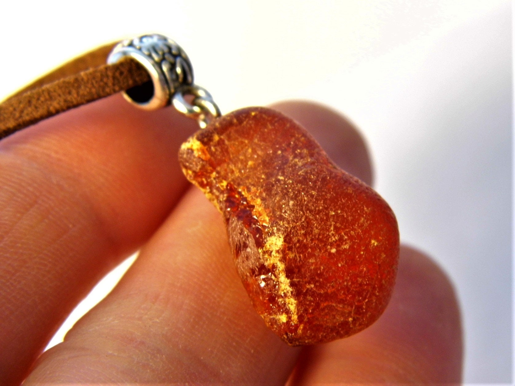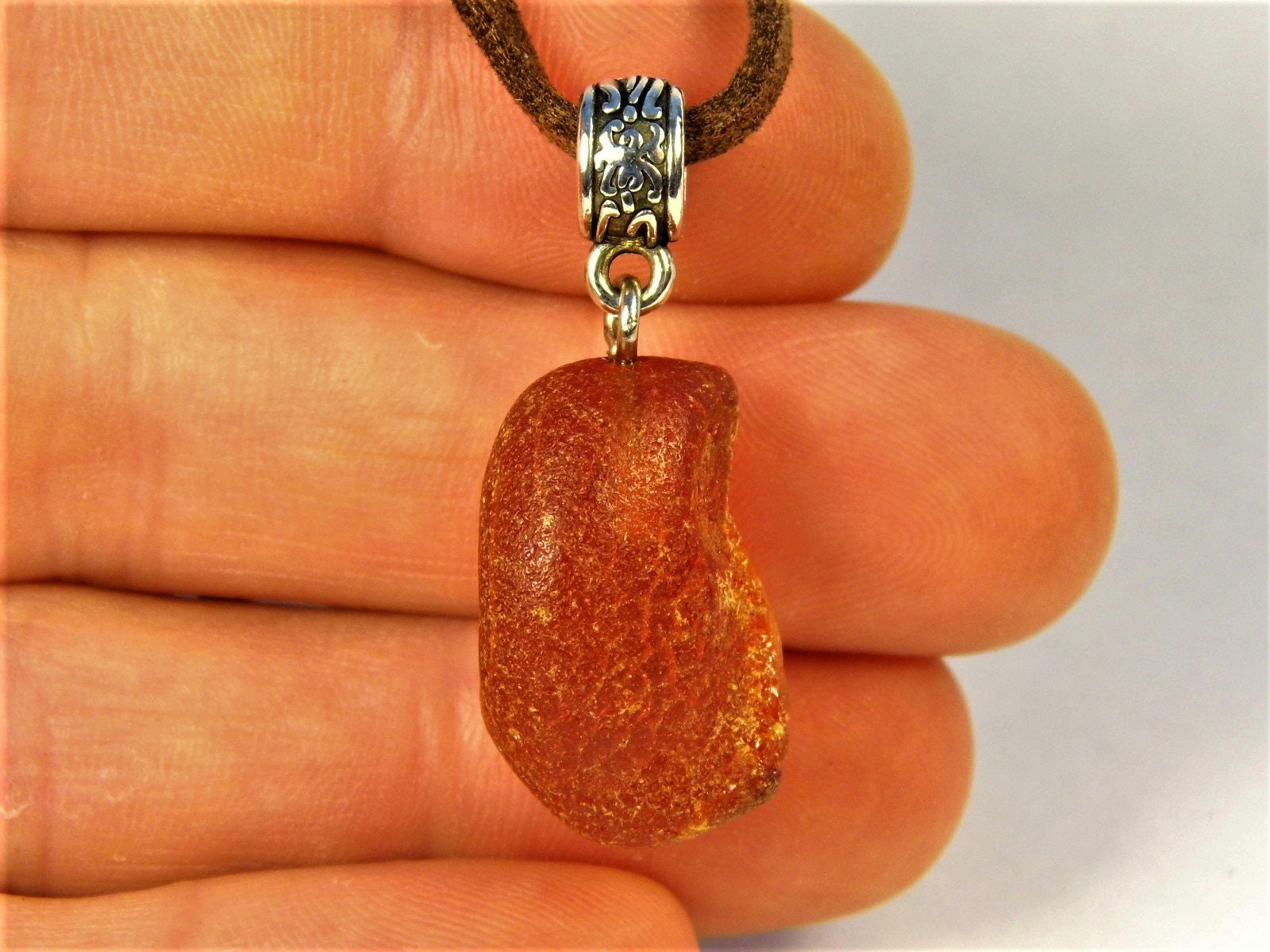 Raw Baltic Amber stone pendant necklace natural genuine men's women's unisex unique jewelry authentic.