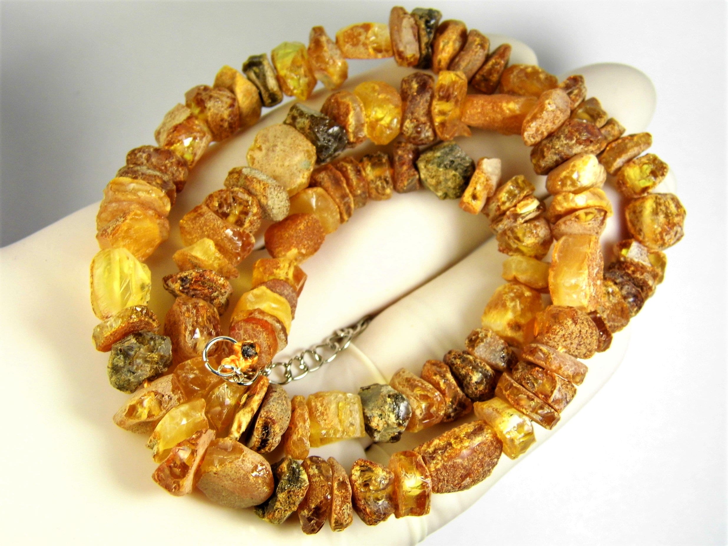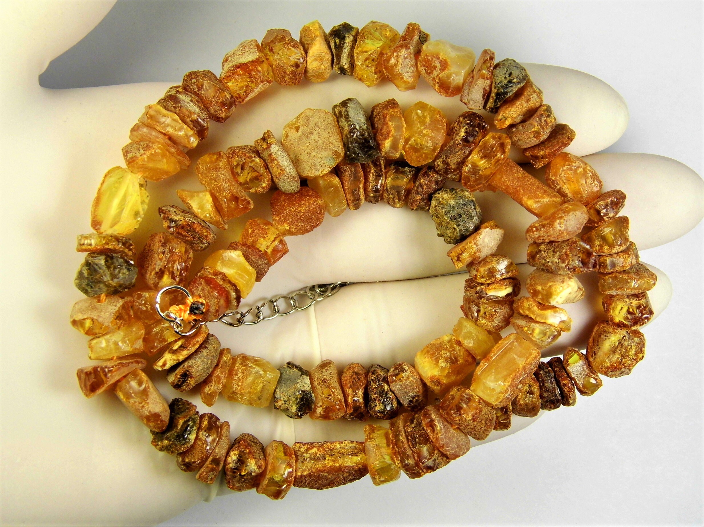 Natural genuine raw unpolished rough Baltic Amber necklace authentic unique men's / women's / unisex jewelry.