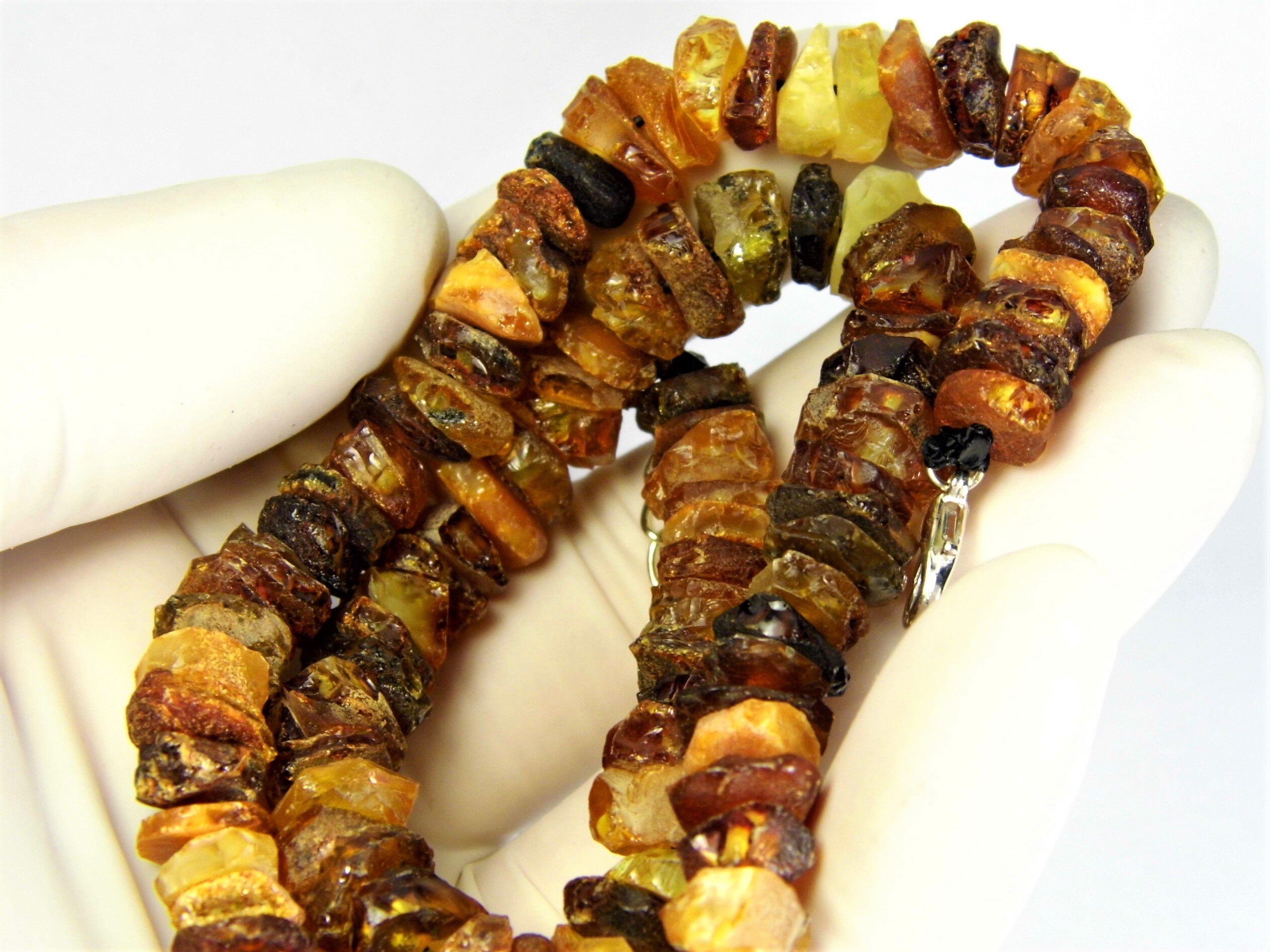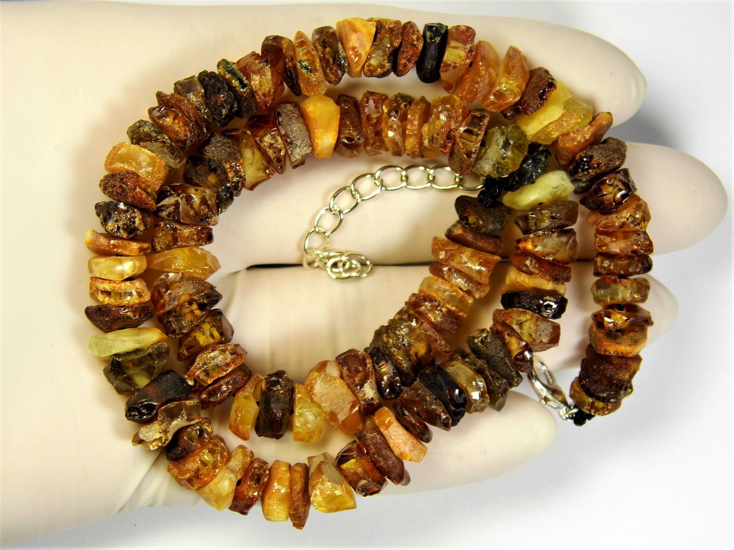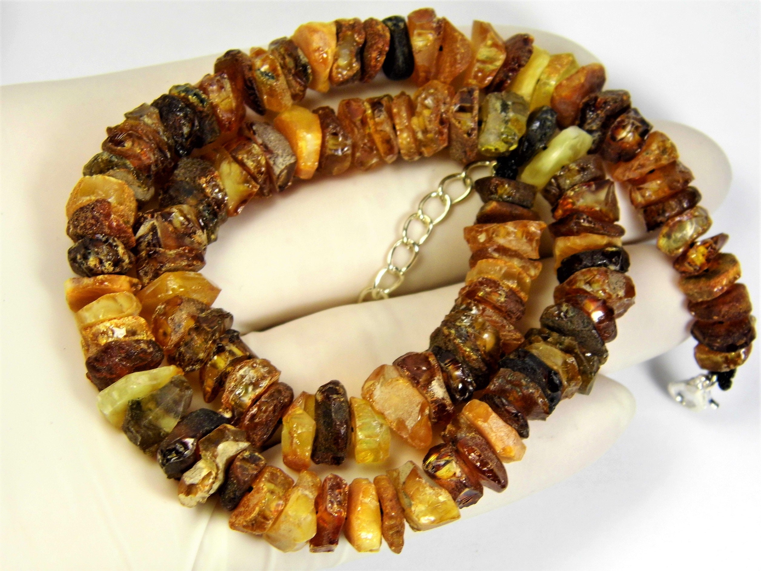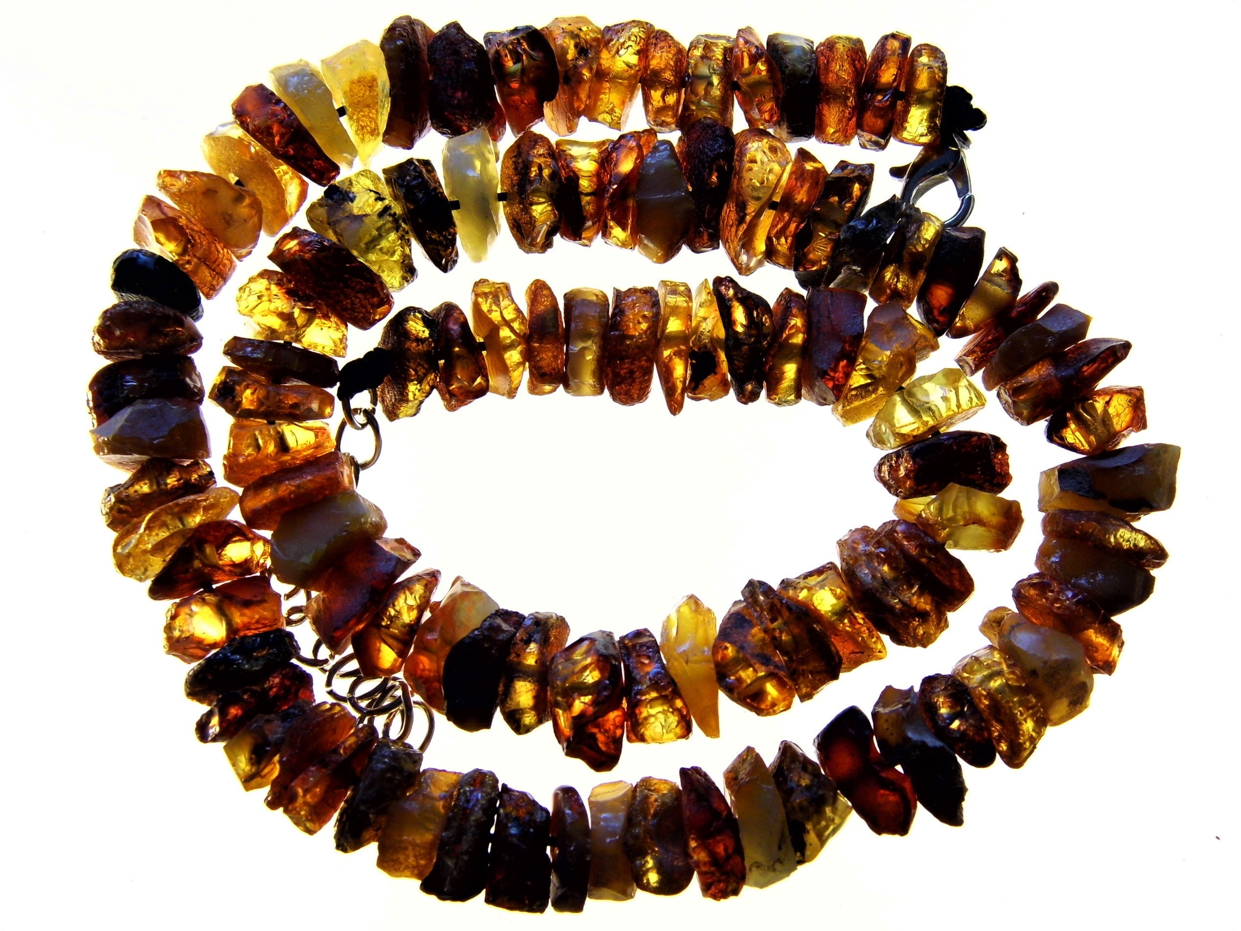 Raw natural genuine real Baltic Amber unpolished rough stones necklace authentic unique men's women's unisex jewelry.