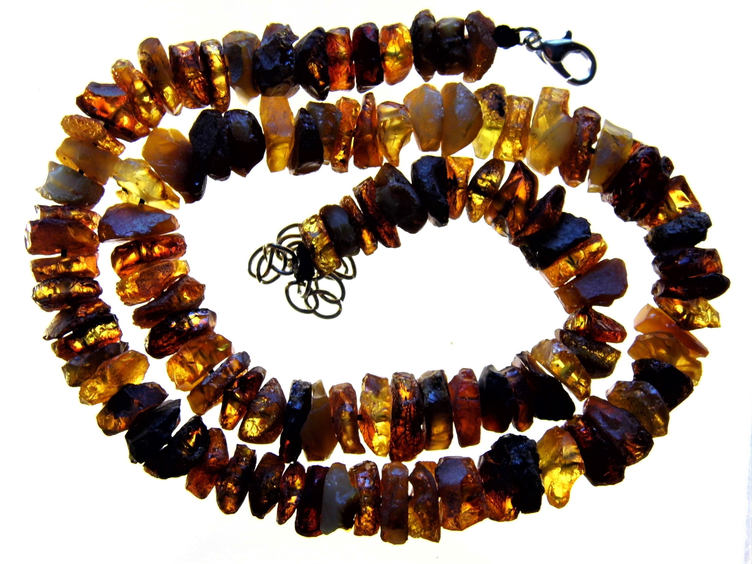 Raw natural genuine real Baltic Amber unpolished rough stones necklace authentic unique men's women's unisex jewelry.